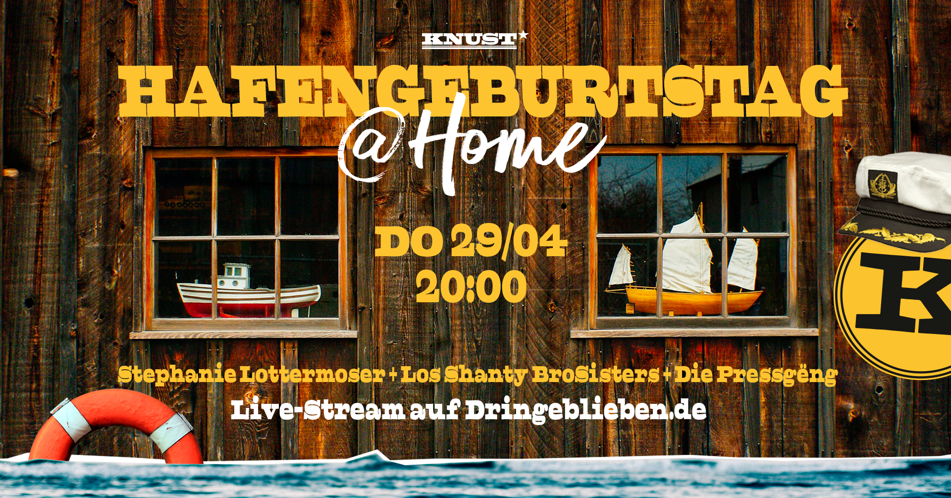 Der Abend findet 20.00 Uhr im Stream auf „Dringeblieben.de“ statt – und am Ende werden alle drei Bands gemeinsam die „Knust-Hamburg-Shanty-Allstar-Crossover-Band gründen“.